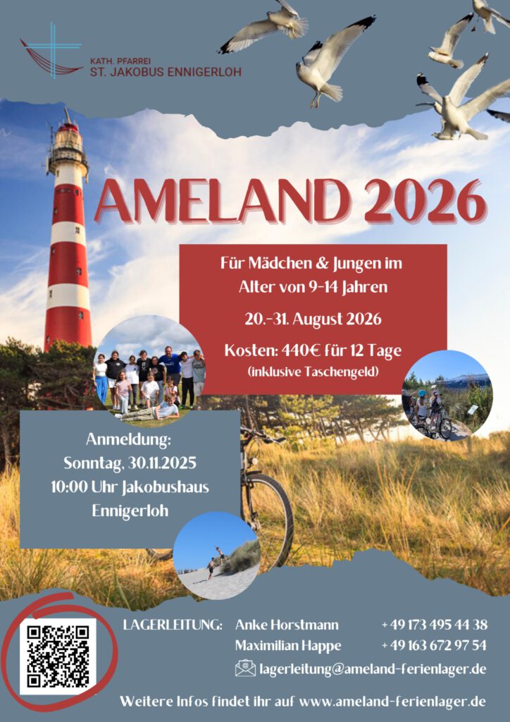 Unsere Anmeldung für das Ferienlager Ameland 2026 findet am 30.11.2025 um 10 Uhr im Jakobushaus Ennigerloh statt.